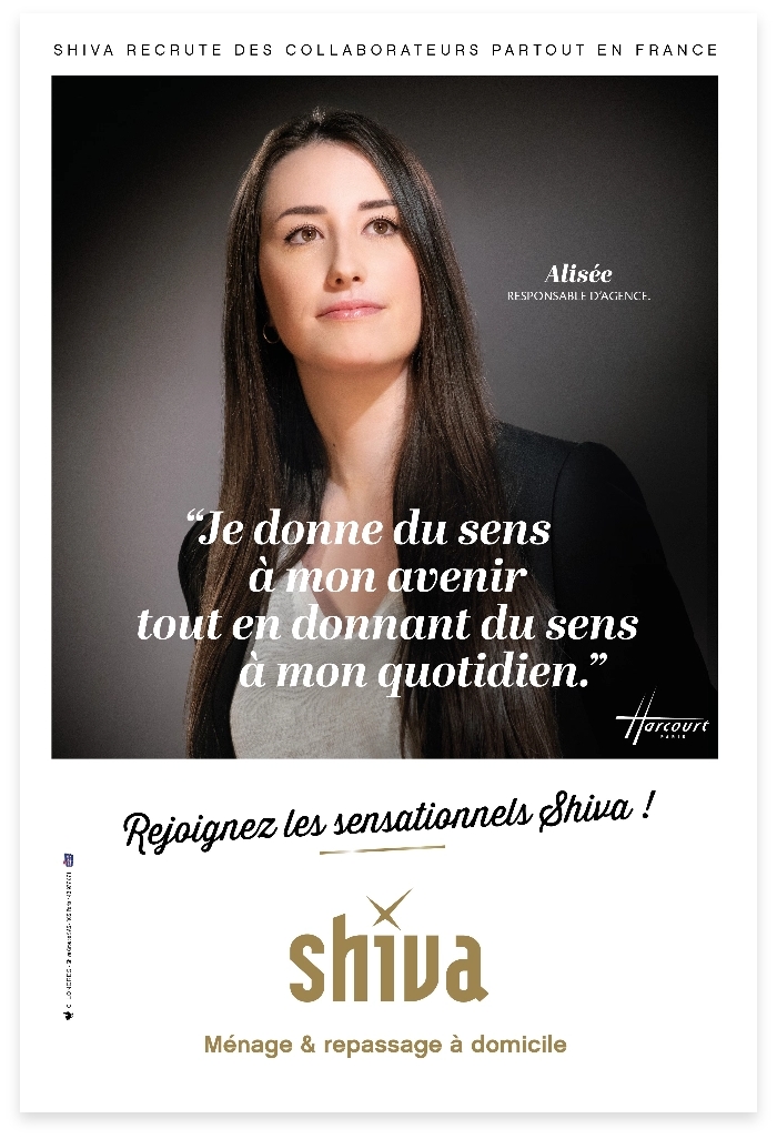 Accueil Une communication de leader Une communication de leader J'ouvre une agence Shiva Une communication qui fait la différence par l'élégance et l'émotion Une communication engagée pour la revalorisation du métier et de ses acteurs.Une communication en rupture des codes traditionnels du secteur.Une communication premium qui redonne du sens et du désir au métier.Une communication riche en émotions, élégante et généreuse. J'ouvre une agence Shiva Une communication qui fait la différence par l'élégance et l'émotion Une communication marque employeur Une communication marque employeur Une communication capable d’interpeler les meilleurs candidats. Cette campagne s’articule autour d’une notion essentielle pour beaucoup, mais également pour la marque : DONNER DU SENSÀ sa carrièreÀ sa vie professionnelleÀ son quotidienCette quête de sens n’a jamais été autant recherchée et souhaitée par tous, quel que soit la catégorie socio-professionnelle. C’est exactement ce que Shiva propose en rejoignant une marque engagée pour une expérience pleine de sens ! J'ouvre une agence Shiva Les films ShivaUne campagne qui met à l’honneur les employés de maison mieux considérés, mieux accompagnés, mieux valorisés, fiers de leur métier. J'ouvre une agence Shiva La puissanceen national et en local Un plan média puissant en TV, radio, affichage (dont une présence permanente dans le métro) et cinéma. Shiva pèse pour près de 50% des investissements publicitaires du secteur.Une présence stratégique et permanente sur les principaux réseaux sociaux et des partenariats influenceurs un peu partout en France. J'ouvre une agence Shiva La puissanceen national et en local Des outils de communication déclinés en local Un accompagnement du service communication pour une parfaite couverture de chaque zone de chalandise. J’ouvre une agence Shiva Le spécialiste du ménage et repassage à domicile Face à une concurrence de généralistes, Shiva choisit la voie de la spécialisation et de l’excellence. Une offre de services “à domicile” précise et structurée. Des interventions régulières ou occasionnelles. J'ouvre une agence Shiva Un sens profond du travail bien fait La garantie d’un ménage au plus près du mode de vie et des attentes de chacun.Des interventions « propres » à chaque client, chaque famille, chaque domicile.Un premier rendez-vous à domicile pour un diagnostic personnalisé.Un contrôle qualité permanent.Un niveau d’intervention sans cesse amélioré par des études et des enquêtes de satisfaction menées auprès des clients comme des employés de maison.Du sur-mesure sinon rien ! J'ouvre une agence Shiva Un sens profond du travail bien fait 500 nouvelles villes d’implantations ! Pour les autres villes, consultez-nous. Autour de moi ou Rentrez un code postal valide ou Autour de moi