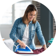 Votre aide à domicile s’occupe d’étendre une lessive et de repasser quelques robes et chemises.